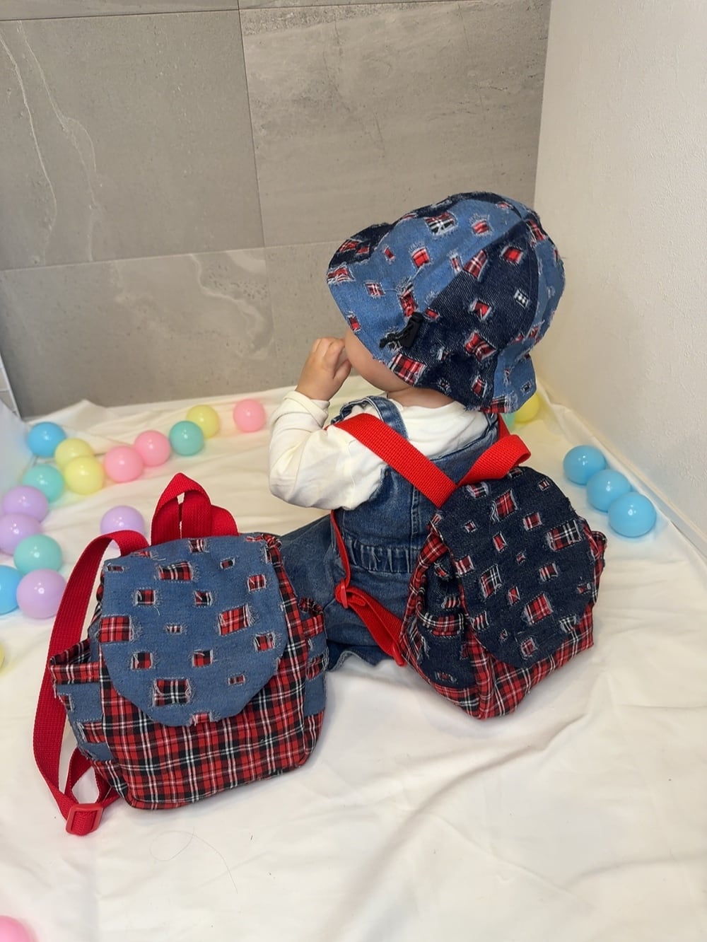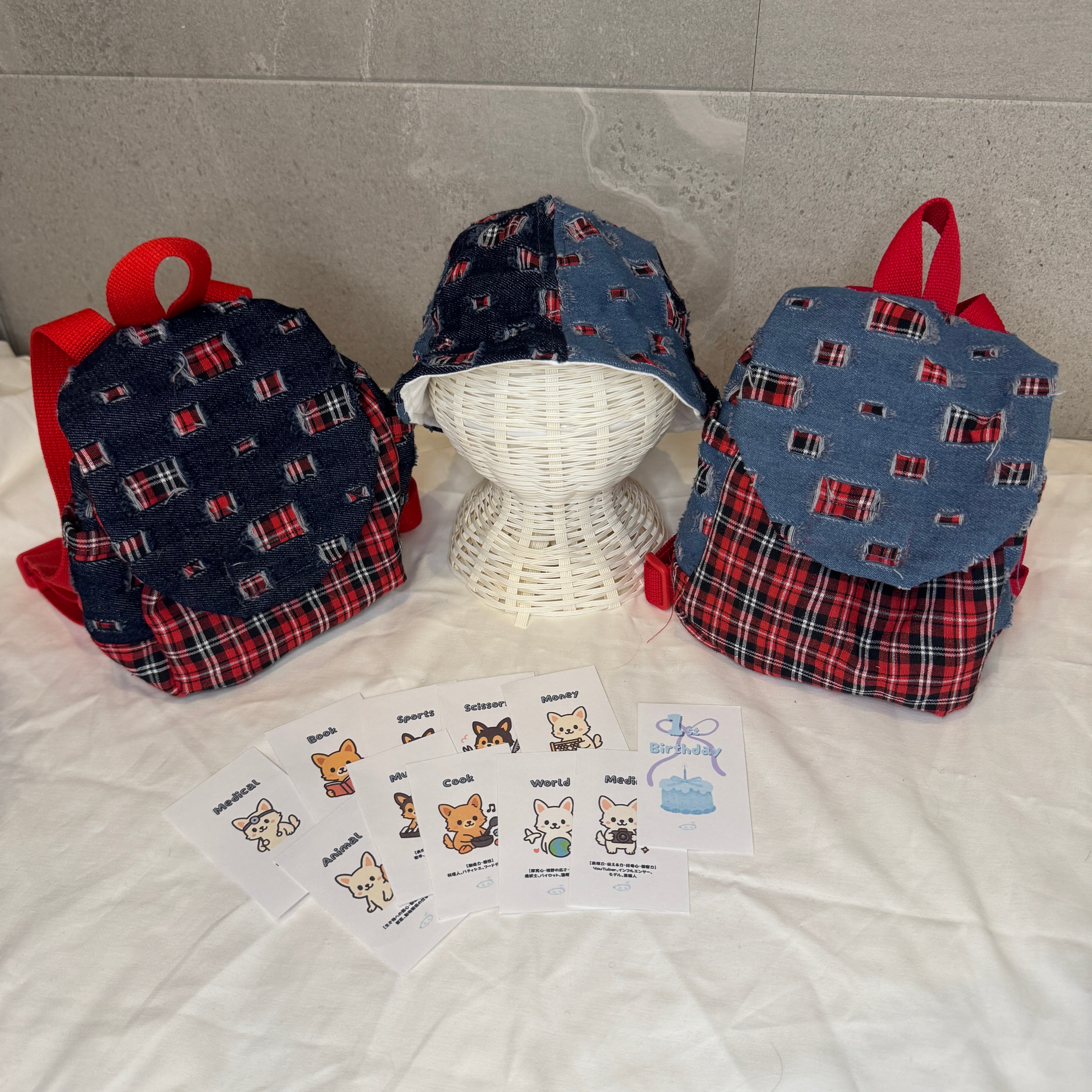 お揃いのベビー帽子とベビーリュックのセットです。