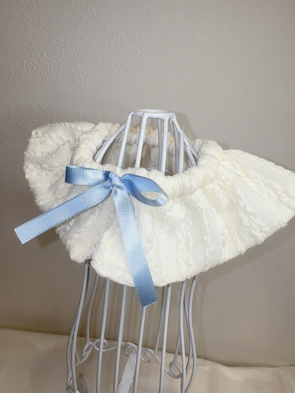 首元にゴムありの、被ってつけるタイプのスタイになります。