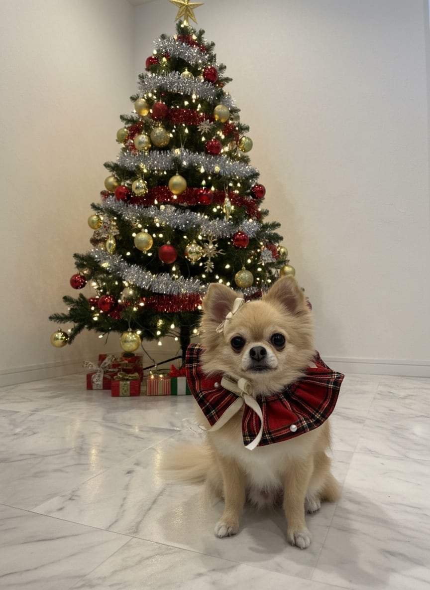 ホリデーシーズンにぴったりな、タータンチェック柄のペット用スタイです。
