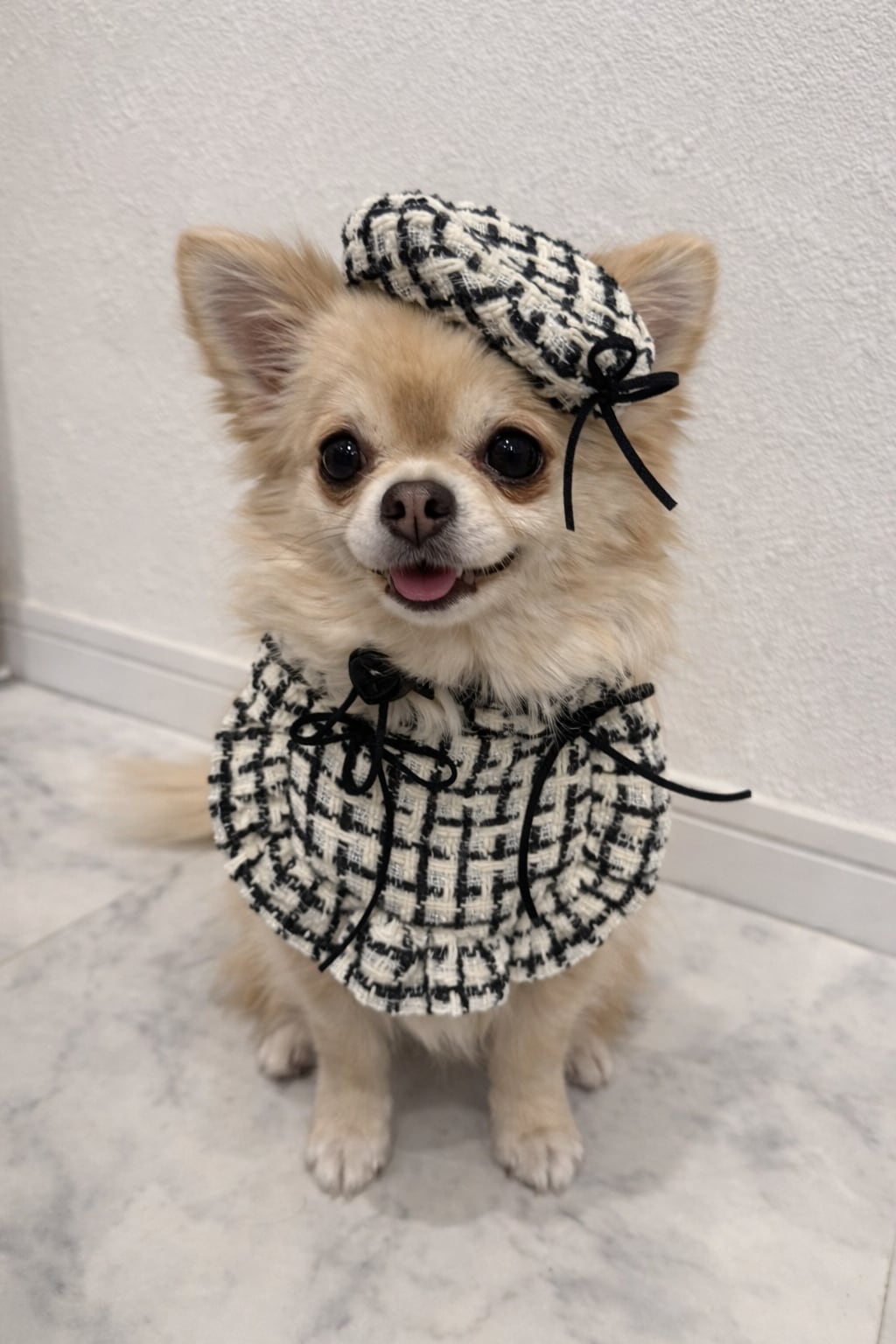 ・【tweed Series】Dog&Cat ribbon beret(ベレー帽)