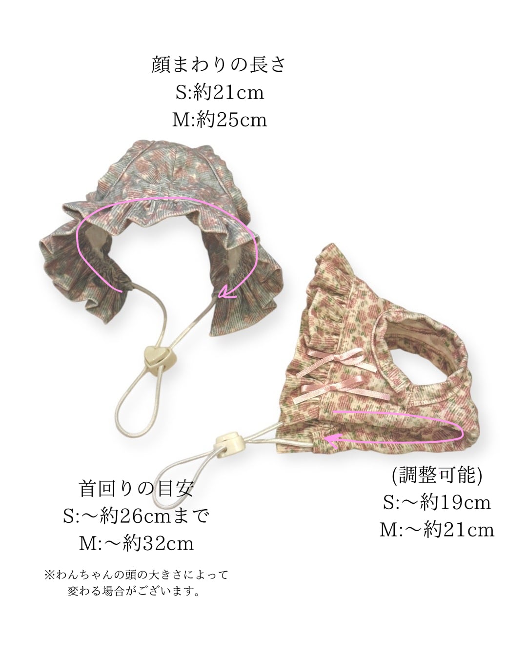※わんちゃん、ねこちゃんの頭の大きさによって変わる場合がございます。