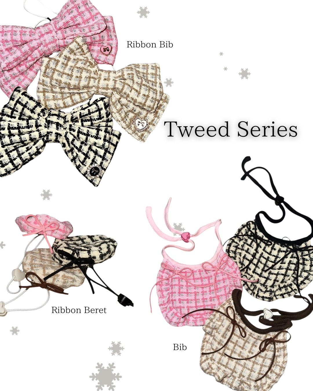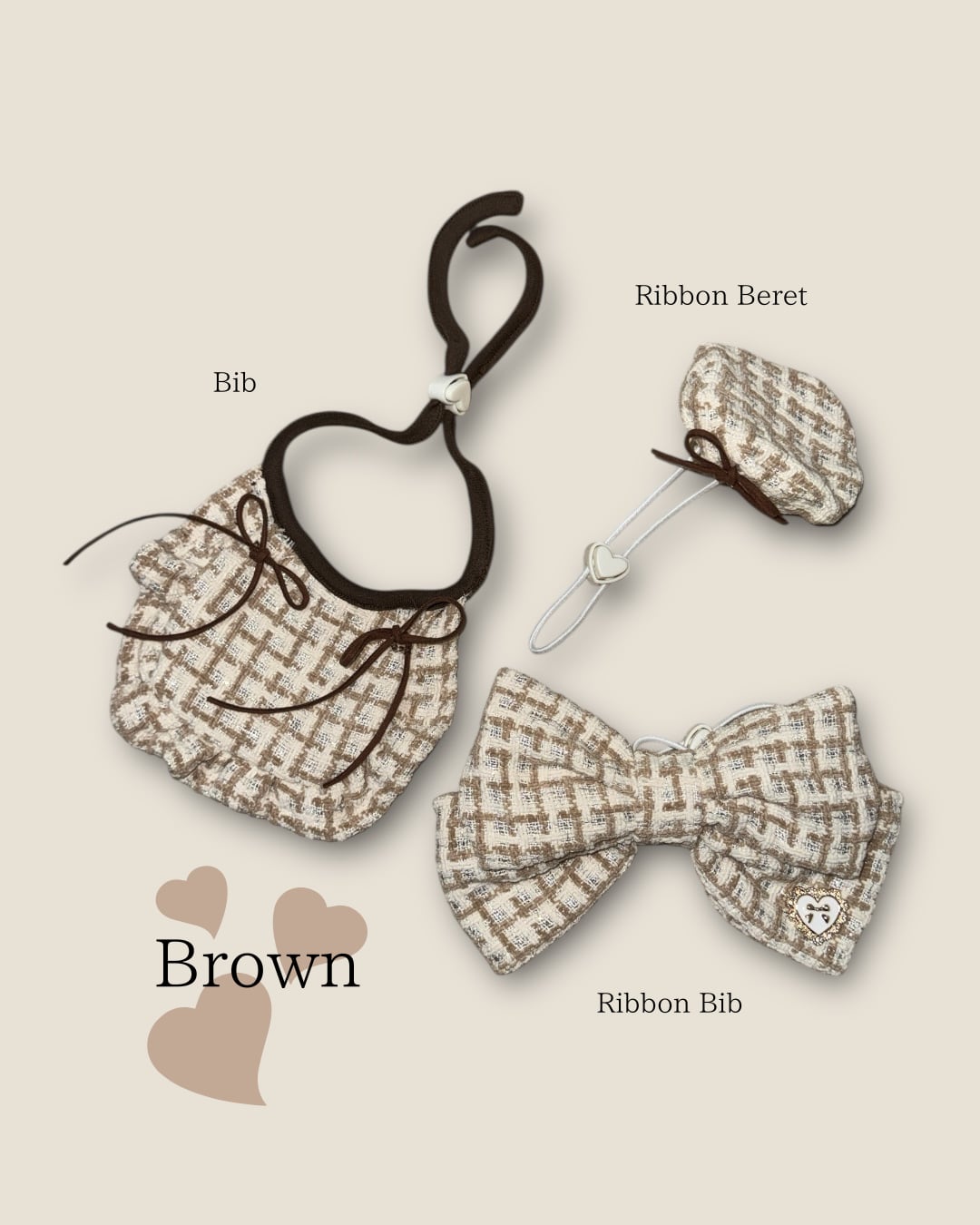 再販分【tweed Series】Dog&Cat Bib&ベレー帽セット Brownのみ