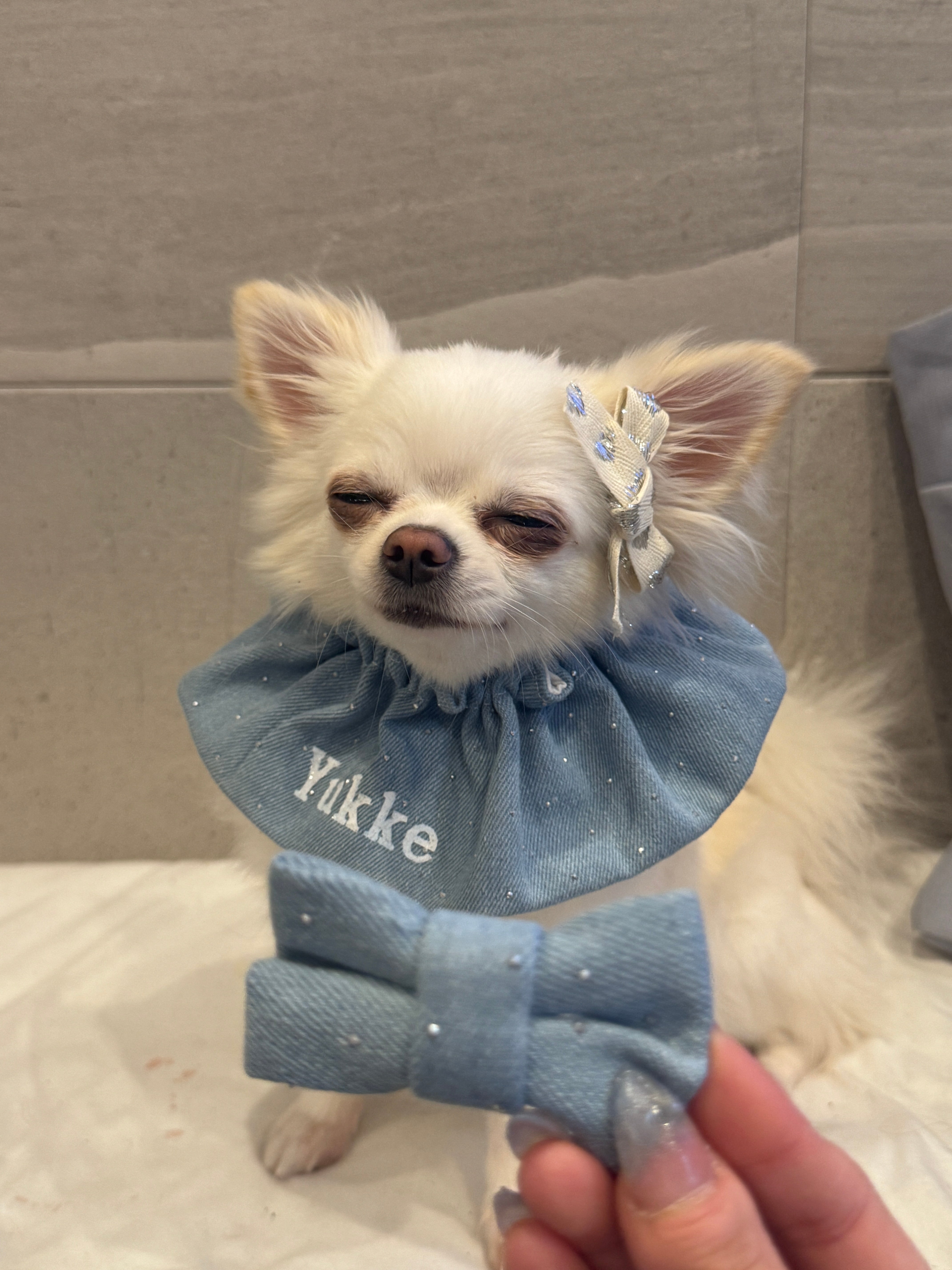 ゆっけちゃん Mサイズ着用(ポメチワ、首まわり22cm)